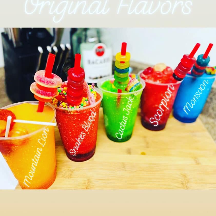 We are a New Orleans inspired daiquiri service; located in Tucson, AZ. If you are not familiar with daiquiris, they are frozen drinks - similar to a slushy. Candies are included in all drinks.