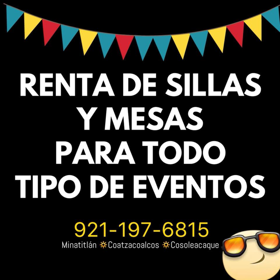 Renta de sillas y mesas en Minatitlán para todo tipo de eventos y fiestas. Contamos con mobiliario de calidad y a buen precio.