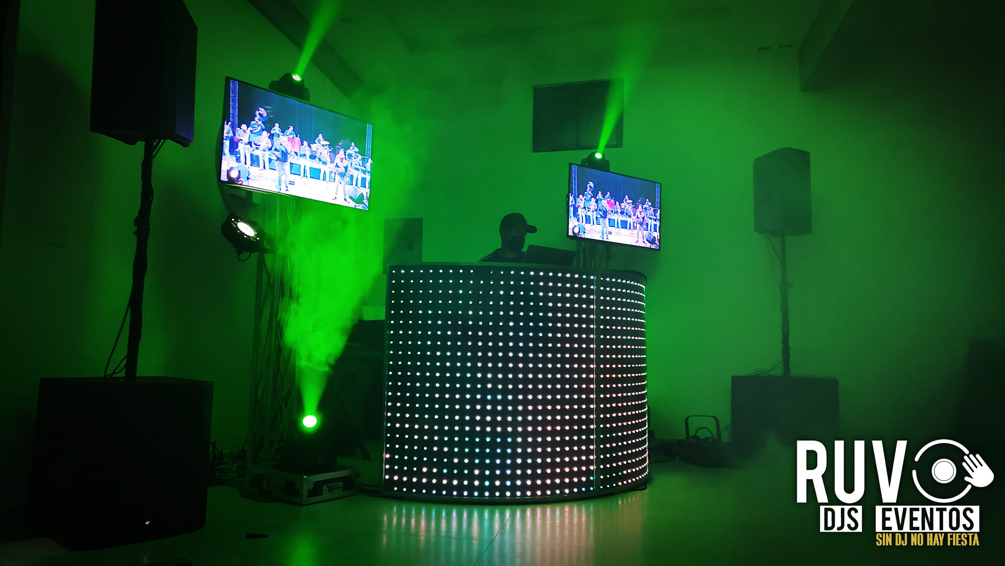 RUVO DJS EVENTOS Audio e iluminacion Dj Profesional Cabina Dj iluminada Pantallas LED Tecnobanda Cabina fotografica Accesorios carnaval y mas.